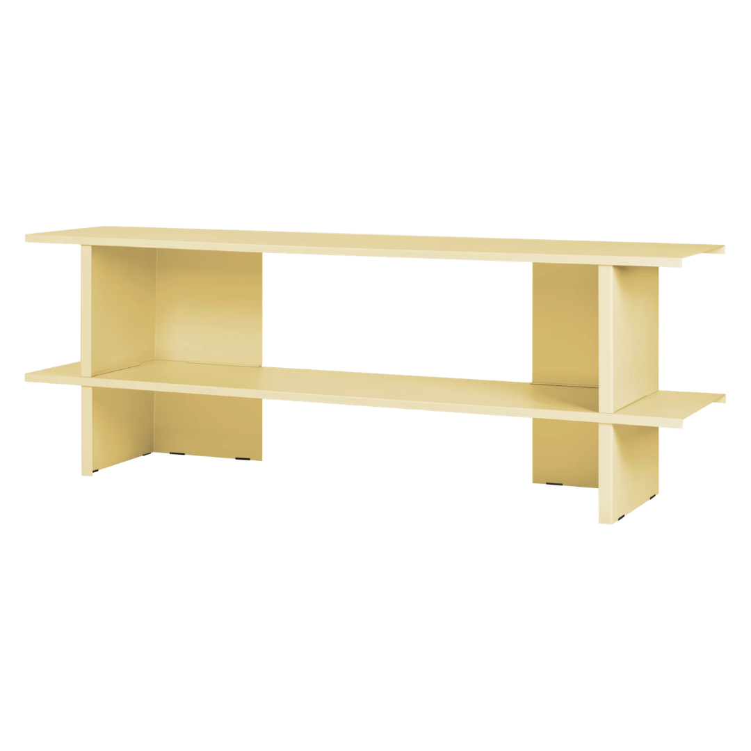 A clean and modern low shelving unit designed for versatile storage. Perfect as a TV stand, media console, or for displaying books, records, and décor. Its open design offers plenty of space while maintaining a sleek, minimalist look.