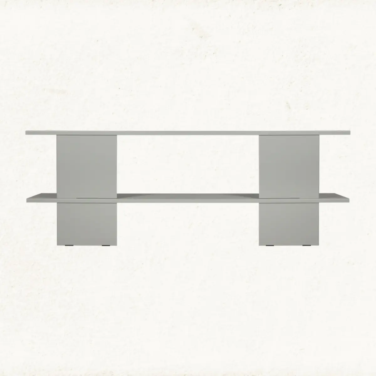 Streamline your space with the minimalist elegance of our Two-Row Shelve Unit in Grey. Built with sturdy bent steel construction and accented by unique protruding elements, this shelving unit combines industrial durability with refined aesthetics. Its neutral grey finish makes it a versatile addition to any interior.